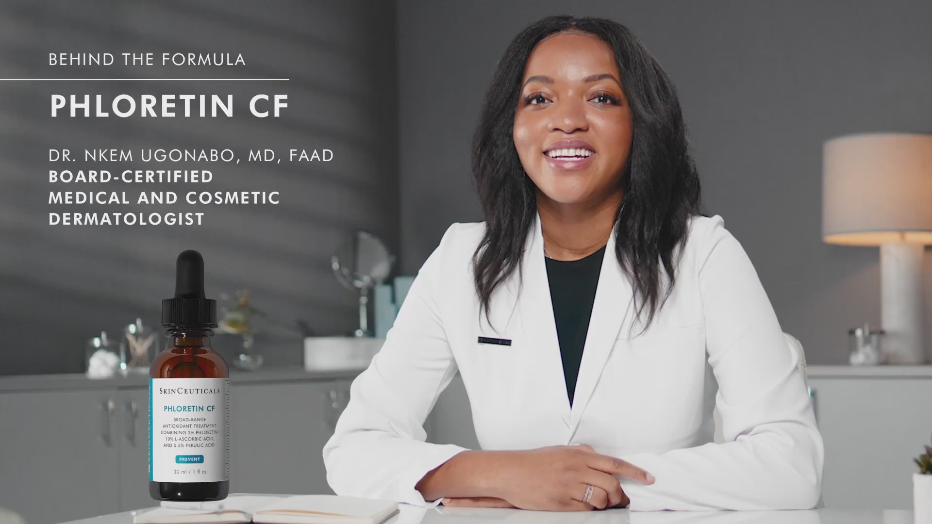 Phloretin CF features a patented synergistic combination of 2% phloretin, 10% pure vitamin C (l-ascorbic acid), and 0.5% ferulic acid for enhanced protection against atmospheric skin aging – environmental damage and premature signs of aging caused by free radicals from UVA/UVB, infrared radiation (IR-A), and ozone pollution (O3). In addition to antioxidant protective benefits, Phloretin CF improves the appearance of discoloration, fine lines, and uneven skin tone.